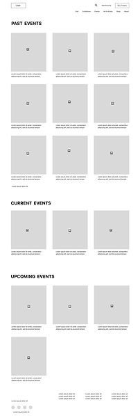The Exhibitions and Events pages feature a vertical layout, displaying current, upcoming, and past items in one continuous scroll. This layout ensures a clear overview and simple, intuitive access to all exhibitions and events
