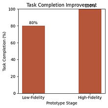 Based on usability testing with 5 participants, task completion increased by 20%, improving from 80% (4/5 users) in the low-fidelity prototype to 100% (5/5 users) in the high-fidelity iteration.