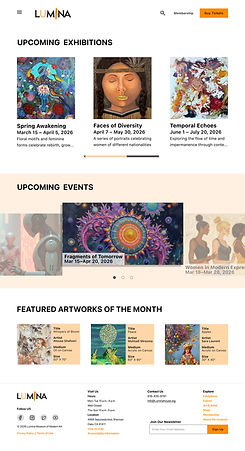 Lumina is a modern art museum website concept designed to provide an intuitive digital experience, offering clear navigation, easy access to exhibitions and events, and a simplified booking process for museum visitors.